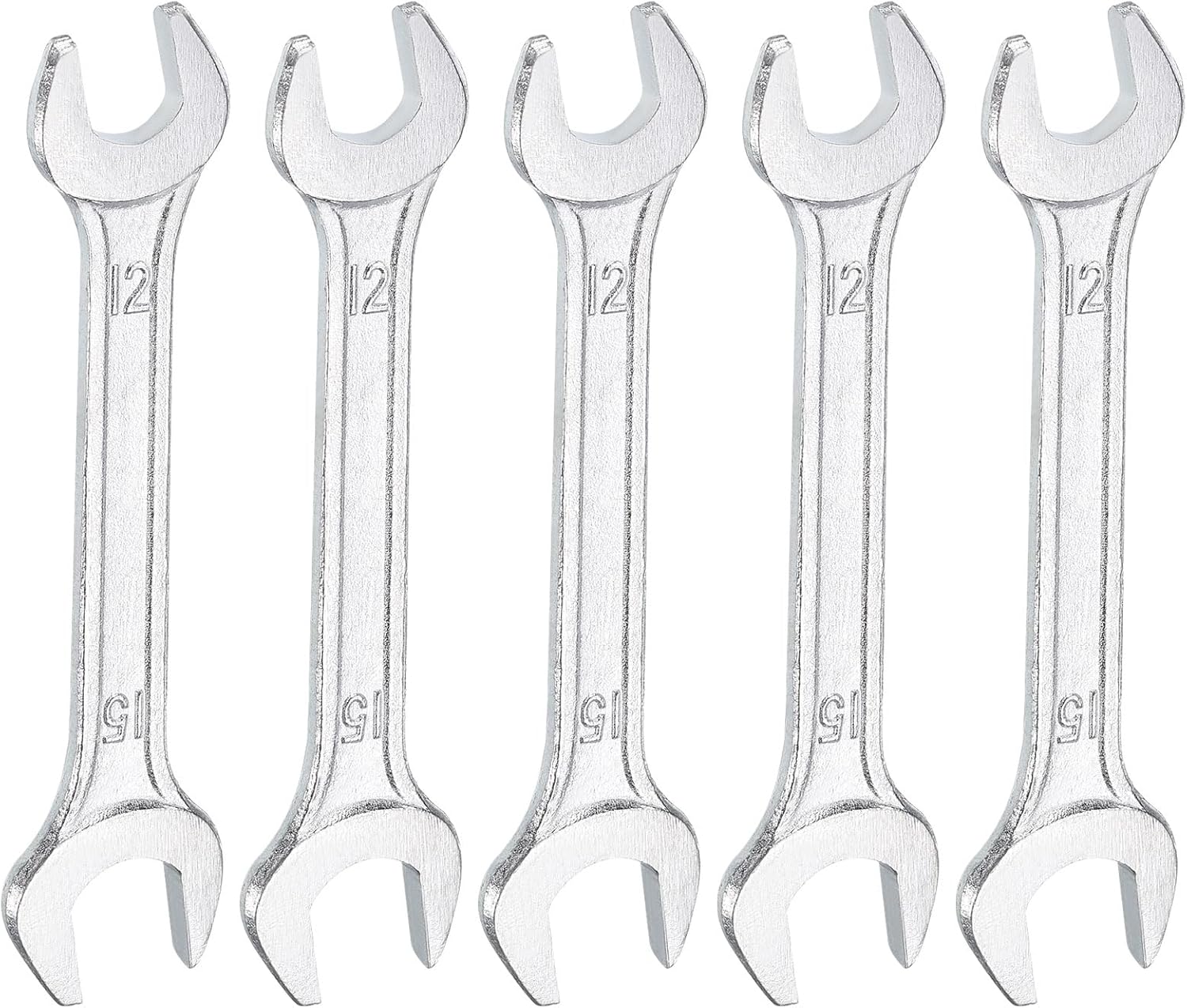 HARFINGTON 5pcs Double Open End Wrench 12mm x 15mm Metric 15 Degree Offset Angle Small Flat Head Wrench Galvanizing Open Ended Spanner for Automotive Repair Furniture Assembly
