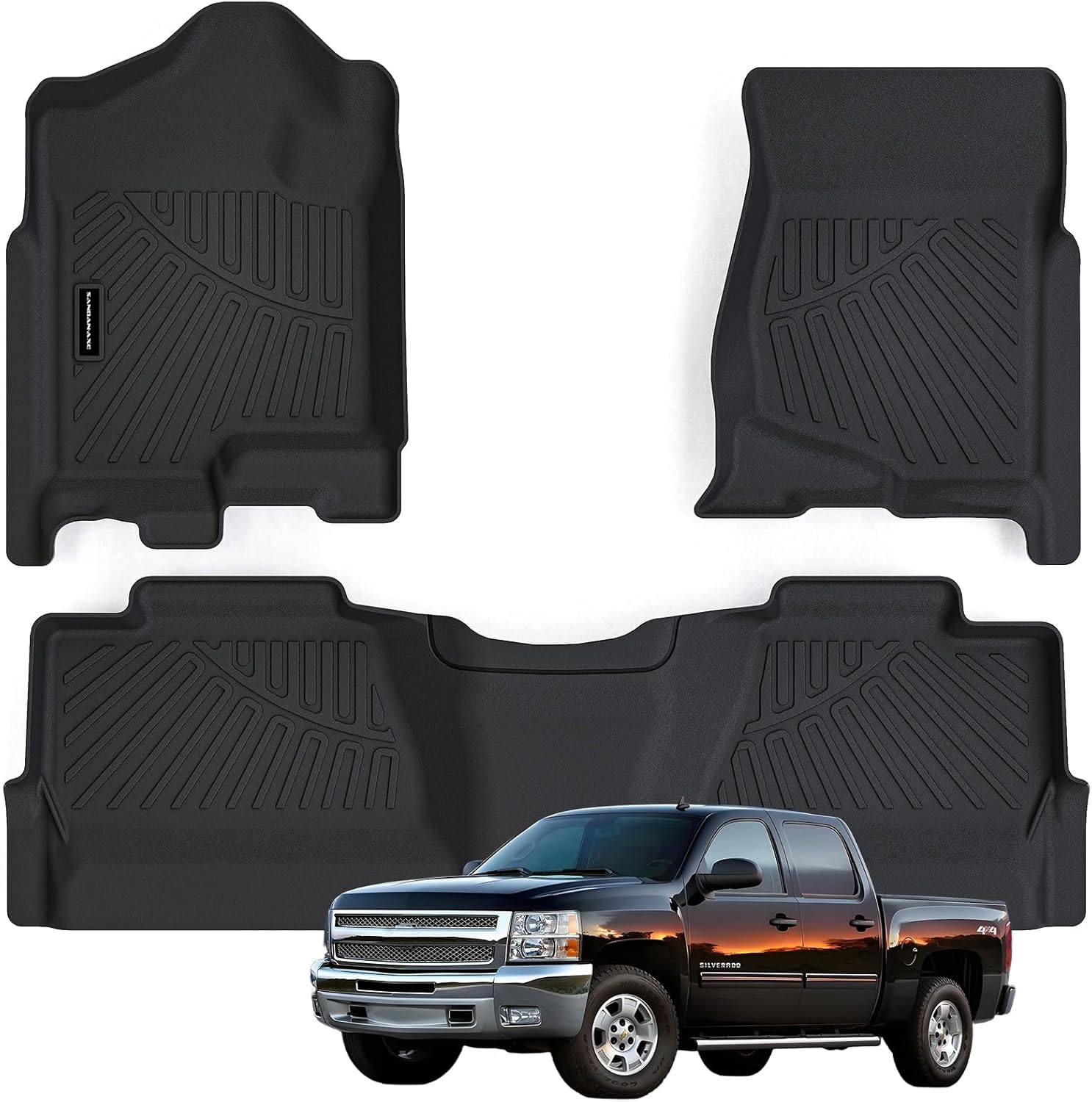 - 【🚗Custom Fit for Chevy Silverado & GMC Sierra 1500 Crew Cab 2007-2013】Floor Matst. The SANBAN-AXE floor mats is high-precision laser measured, which means that our customized fit will provide the best coverage range, looking like the mat included with your car.