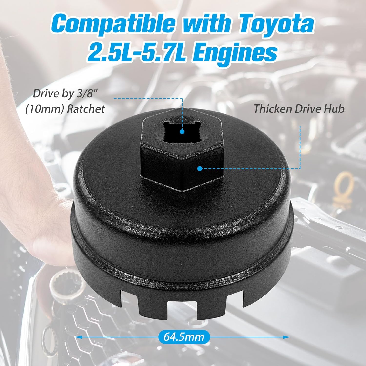 - Perfect Match: Our oil filter wrench tool is designed for oil filters with a 64mm diameter and 14 slots. It is widely compatible with 2.5L - 5.7L engines in Toyota, Lexus, Highlander and other models, and is an indispensable tool for car maintenance and repair
