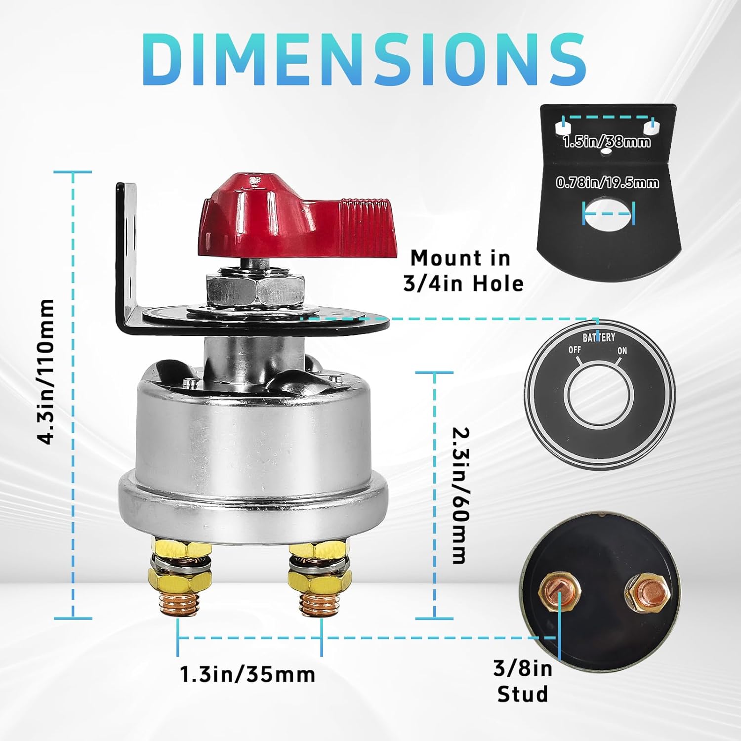 - Easy Installation:The battery isolator switch with a panel Features an ON/OFF indicator and audible "click" feedback for precise control.Pre-drilled holes and universal 12V compatibility allow setup in minutes—safeguard your electrical system effortlessly.