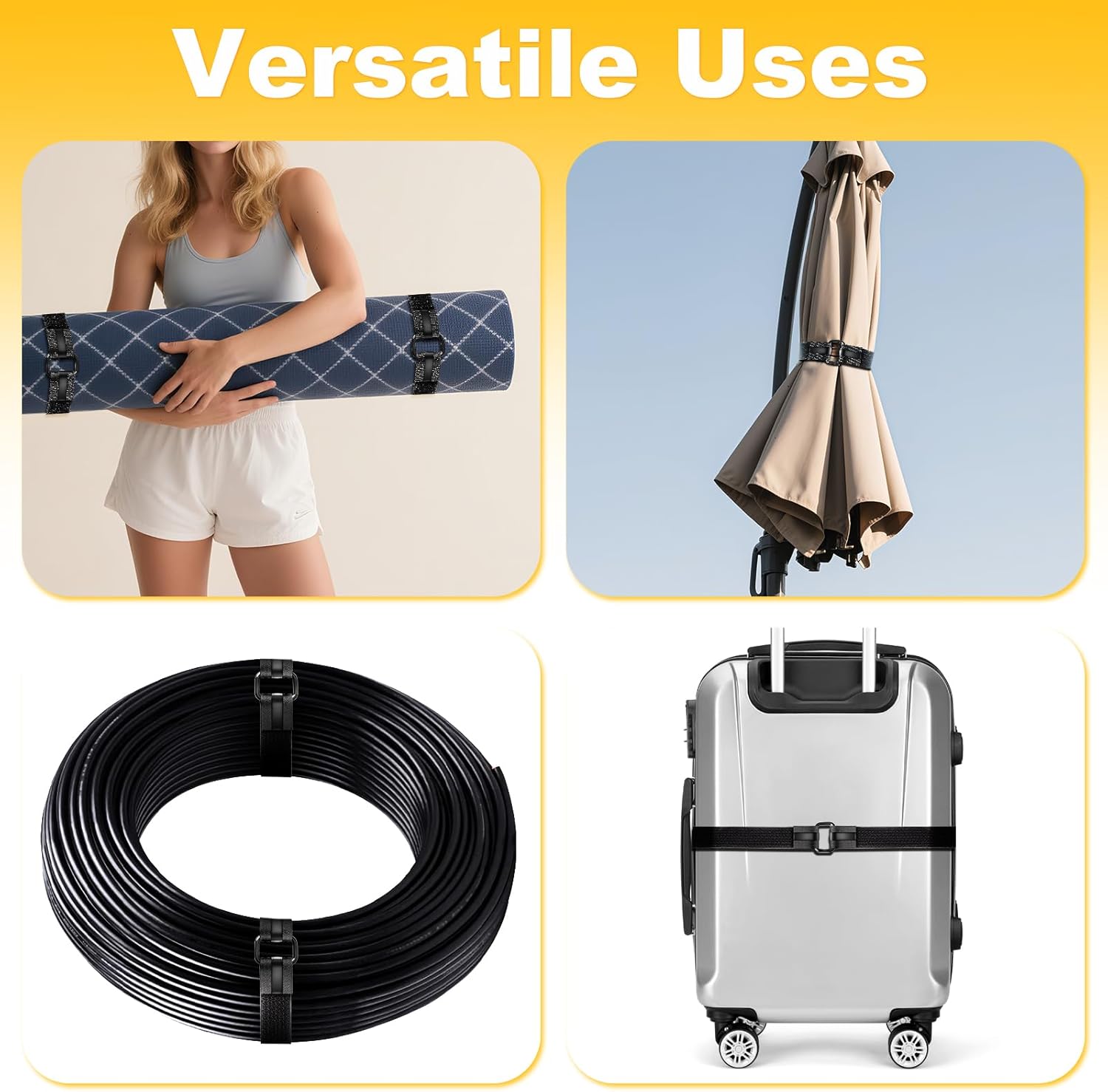 - 【 Widely Used 】 Ideal for bundling and organizing all types of items. Perfect for managing cables and wires, securing bike racks, skis, camping gear, boats, kayaks, and more. Keep your space neat and clutter-free with these versatile straps.