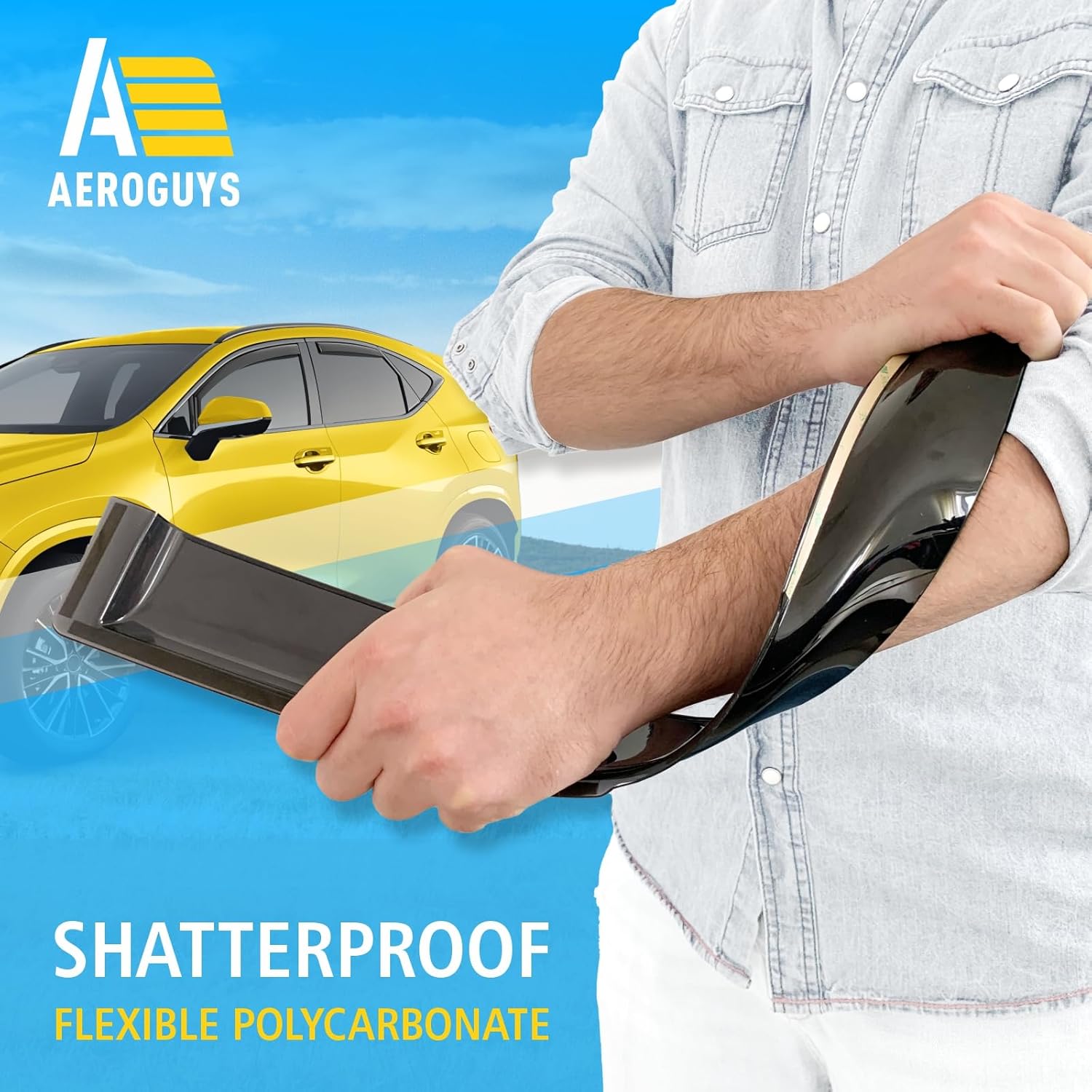 - Incredibly Durable AEROGUYS Auto Window Deflectors – They are made with strong and tough polycarbonate which is clear and scratch-resistant. They also provide UV protection making your ride more comfortable under all weather conditions.