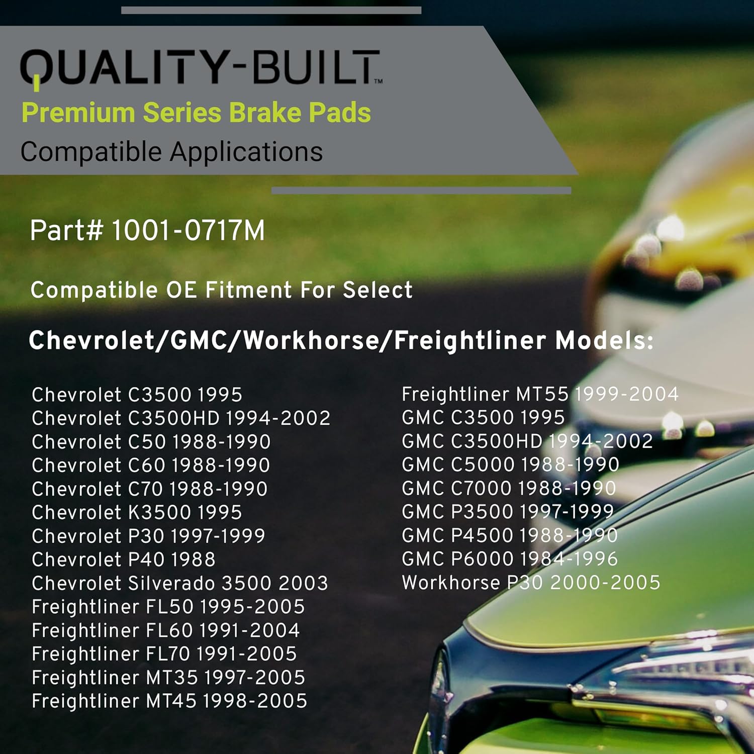 Premium Semi-Metallic Front Brake Pads (1001-0717M) Compatible with 1984-2005 Chevrolet/Freightliner/GMC (C3500/C3500HD/C50/C5000/C60/C70/C7000/FL50/FL60/FL70/Silverado 3500 & More)