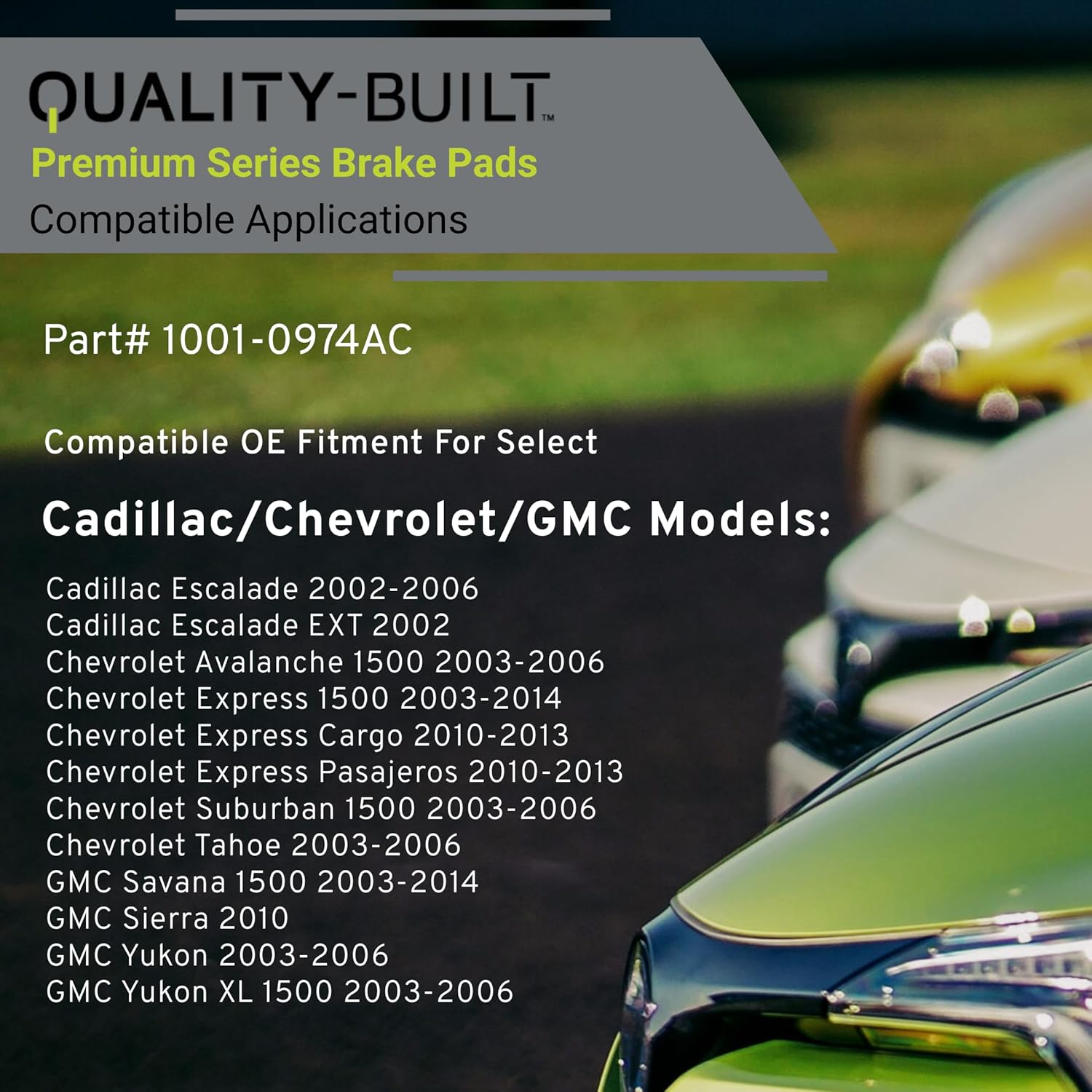 Premium Ceramic Rear Brake Pads (1001-0974AC) Compatible with 2002-2014 Cadillac/Chevrolet/GMC (Avalanche 1500/Escalade/Escalade EXT/Express 1500/Savana/Sierra/Suburban/Tahoe/Yukon)