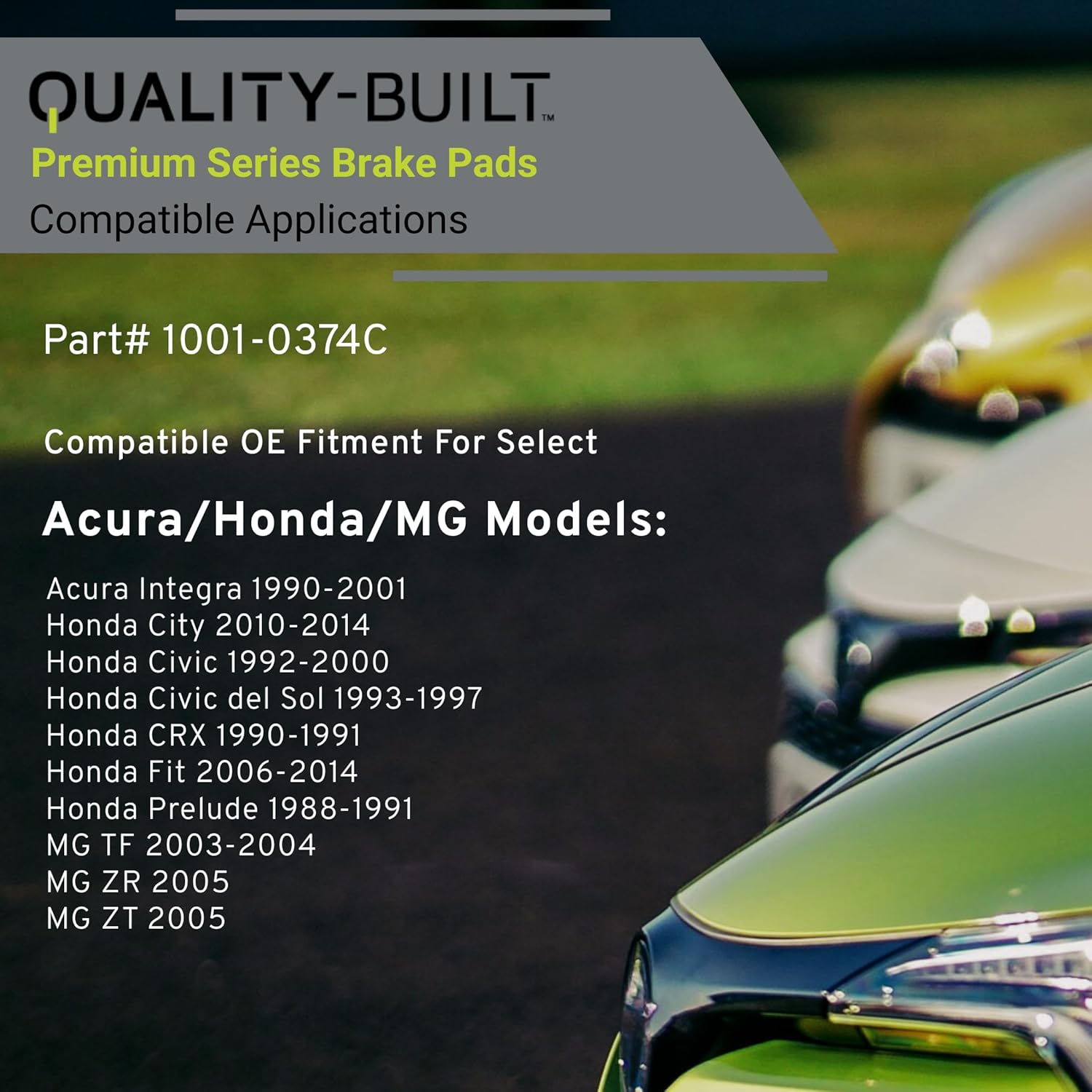 Premium Ceramic Rear Brake Pads (1001-0374C) Compatible with 1988-2014 Acura/Honda/MG (City/Civic/Civic del Sol/CRX/Fit/Integra/Prelude/TF/ZR/ZT)