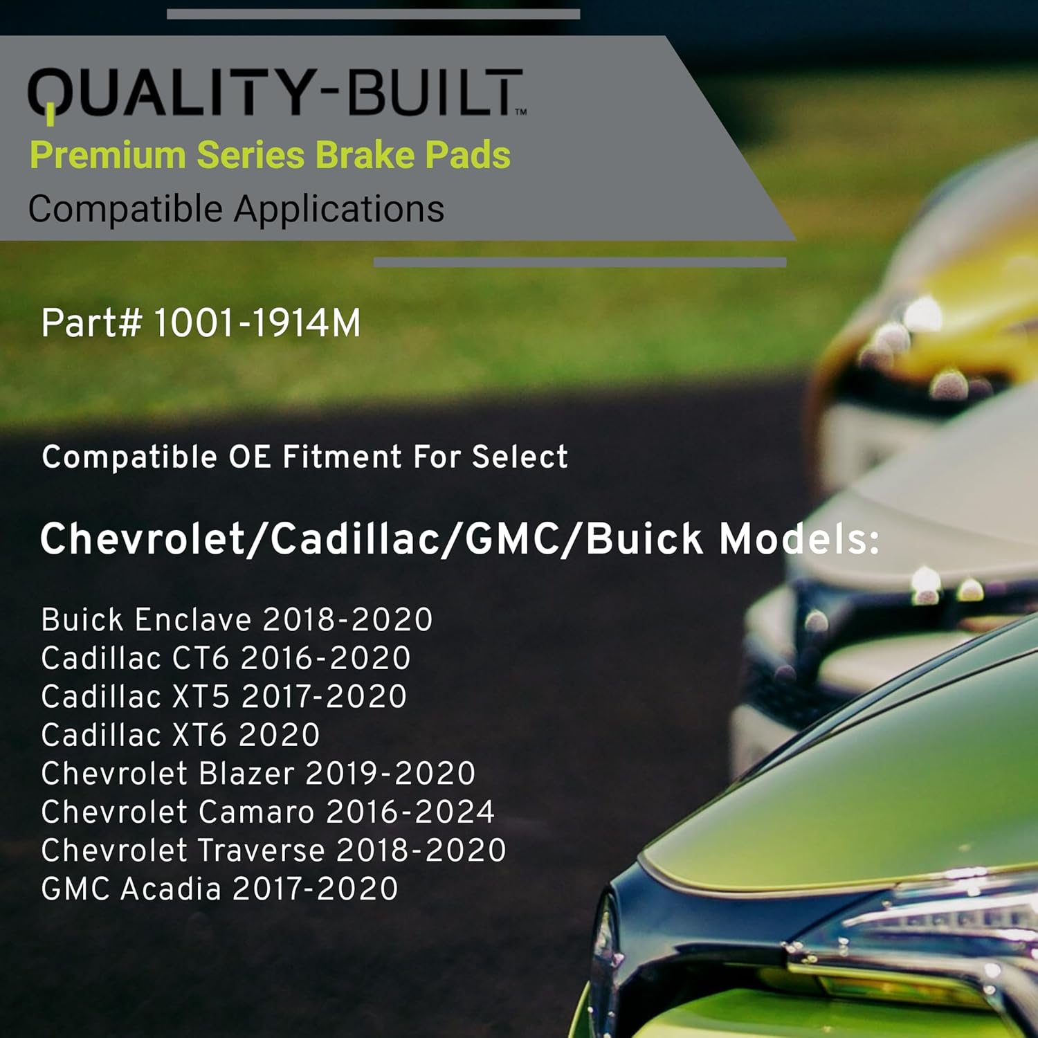 Premium Semi-Metallic Rear Brake Pads (1001-1914M) Compatible with 2016-2024 Buick/Cadillac/Chevrolet/GMC (Acadia/Blazer/Camaro/CT6/Enclave/Traverse/XT5/XT6)