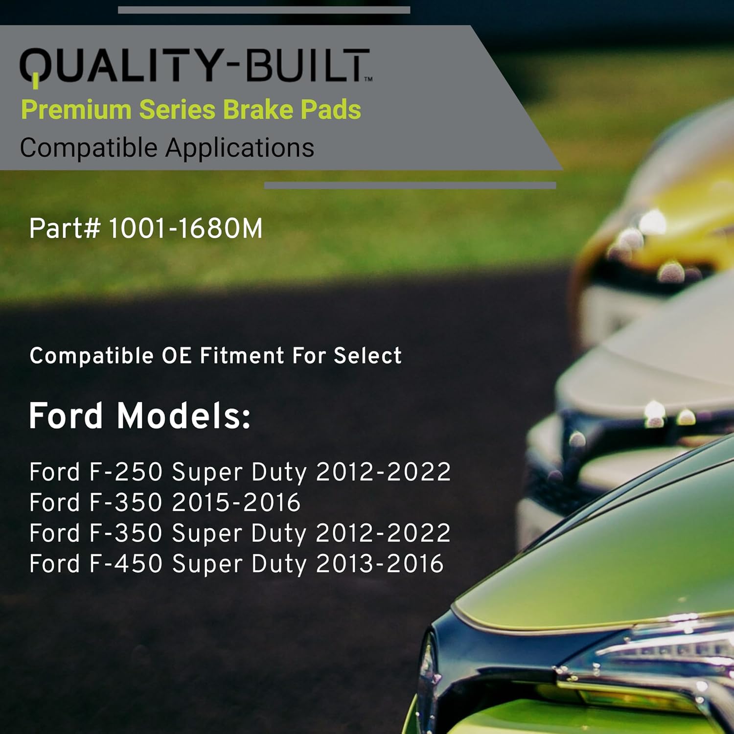 Premium Semi-Metallic Front Brake Pads (1001-1680M) Compatible with Ford F-250 Super Duty 2022-2012, F-350 2016-2015, F-350 Super Duty 2022-2012, F-450 Super Duty 2016-2013