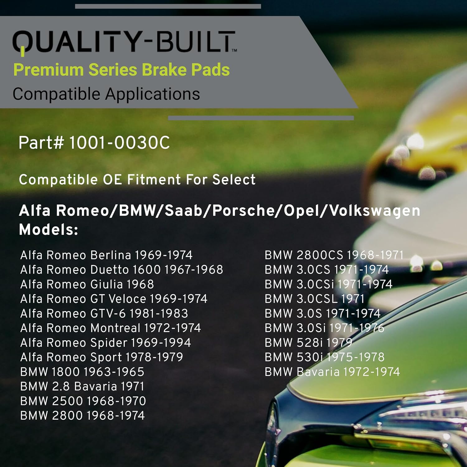 Premium Ceramic Front Brake Pads (1001-0030C) Compatible with BMW 1800 1965-1963, Opel Kadett 1966-1964, Volkswagen Sedan 1979-1975, Sedan 2004-1996