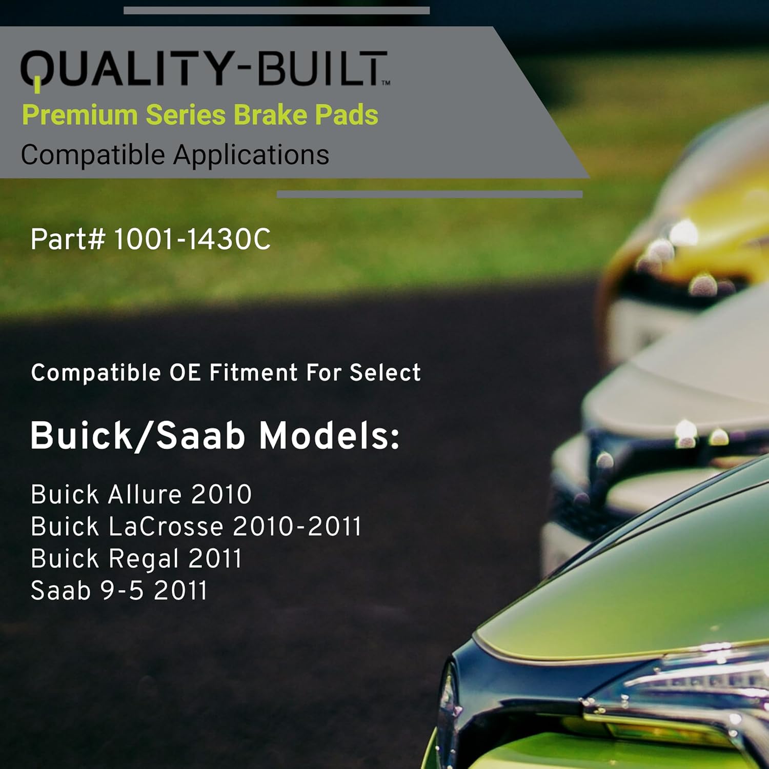 Premium Ceramic Rear Brake Pads (1001-1430C) Compatible with Buick Allure 2010-2010, Buick LaCrosse 2010-2011, Buick Regal 2011-2011, Saab 9-5 2011-2011
