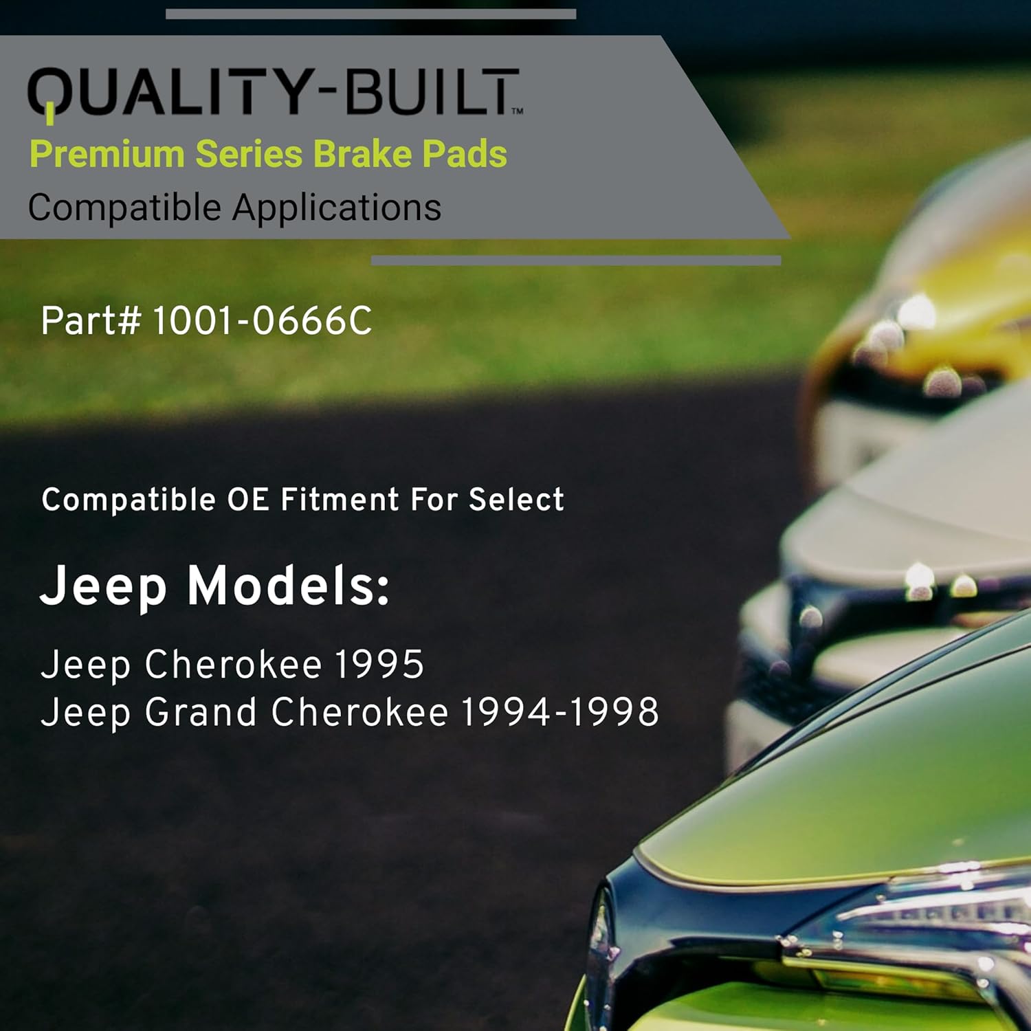Premium Ceramic Rear Brake Pads (1001-0666C) Compatible with Jeep Cherokee 1995-1995, Jeep Grand Cherokee 1994-1998