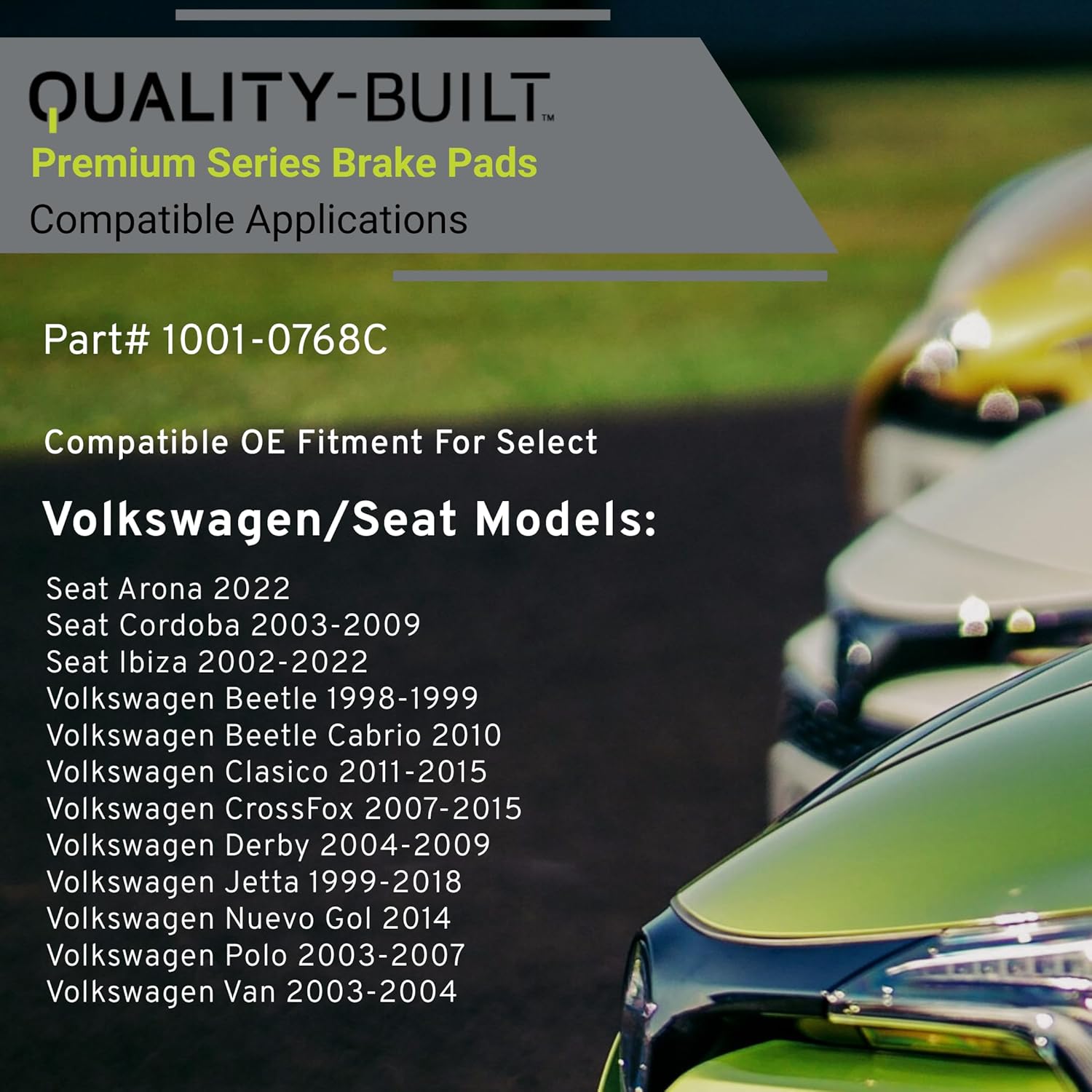 Premium Ceramic Front Brake Pads (1001-0768C) Compatible with 1998-2022 Seat/Volkswagen (Arona/Beetle/Beetle Cabrio/Clasico/Cordoba/CrossFox/Derby/Ibiza/Jetta/Nuevo Gol/Polo/Van)