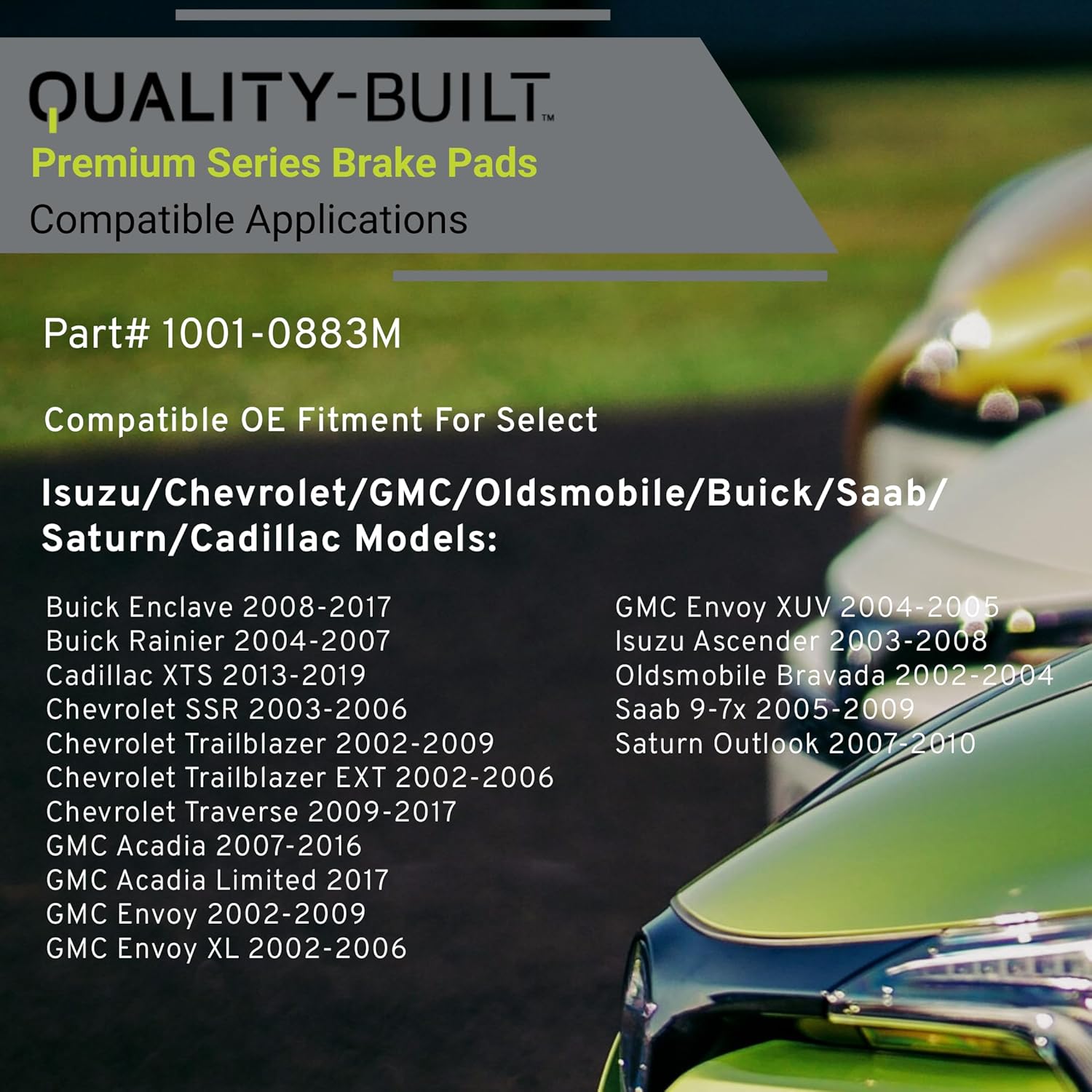 Premium Semi-Metallic Rear Brake Pads (1001-0883M) Compatible with 2002-2019 Buick/Cadillac/Chevrolet/GMC (Acadia Limited/Ascender/Enclave/Envoy/Outlook/Rainier/SSR/Trailblazer & More)
