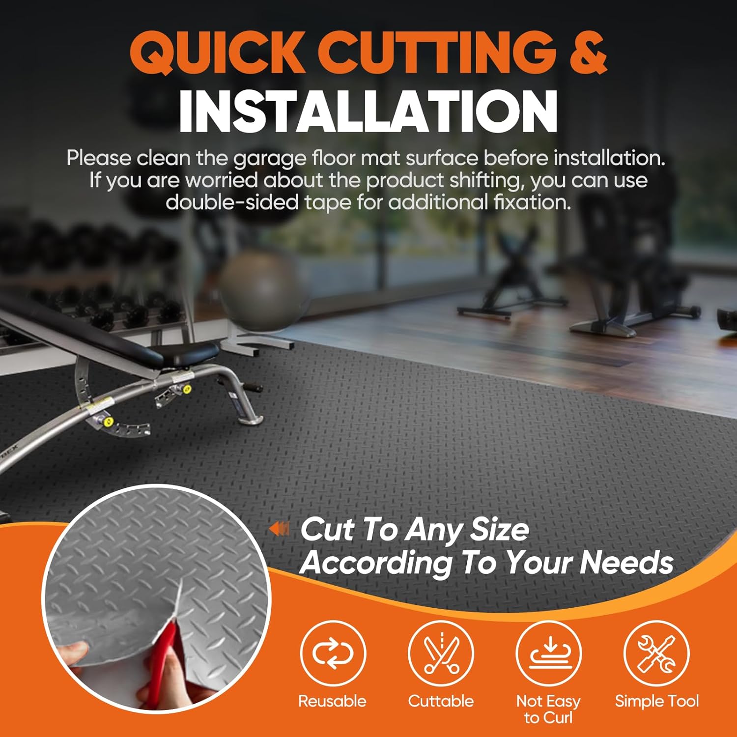 - Flexible Cutting: The large-sized diamond plate rubber mat can meet the different sizes of garage spaces. You can easily cut it into the appropriate size and shape with scissors according to your actual installation needs. The installation is very simple, just lay it flat in the designated position, no complicated tools are required. If you are worried that the garage tire mats may shift, you can use double-sided tape or nails to fix it. (Note: The product does not come with tape and nails)