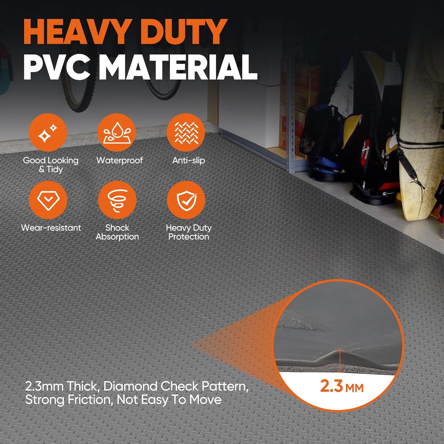 - Durable Protection: Made of heavy-duty PVC, this garage floor mat has excellent scratch and tear resistance, is durable and not easy to deform. It can effectively prevent the tire from directly contacting the ground and avoid floor damage caused by friction, stains or gasoline. This garage parking mat measures 7.5 ft x 17 ft, suitable for parking various models, whether it is a car, compact SUV, golf cart, pickup truck or motorcycle, it can match and protect your floor.