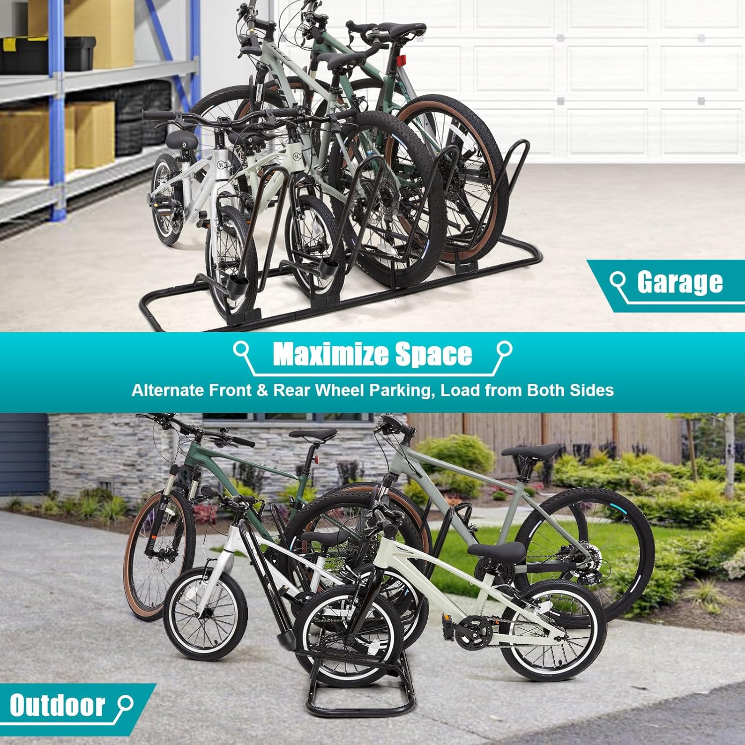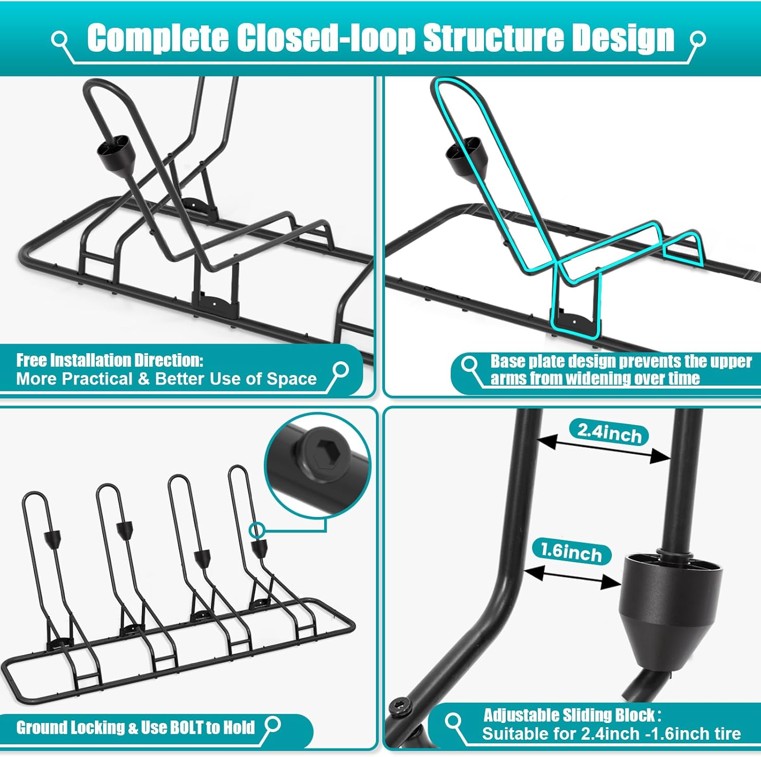 - Sturdy Construction & Flexible Installation: Our floor bike rack made of full steel for sturdiness and no deformation with updated construction, which is more sturdy and will not deform. At the same time, you can choose to assemble in any direction to better utilize space