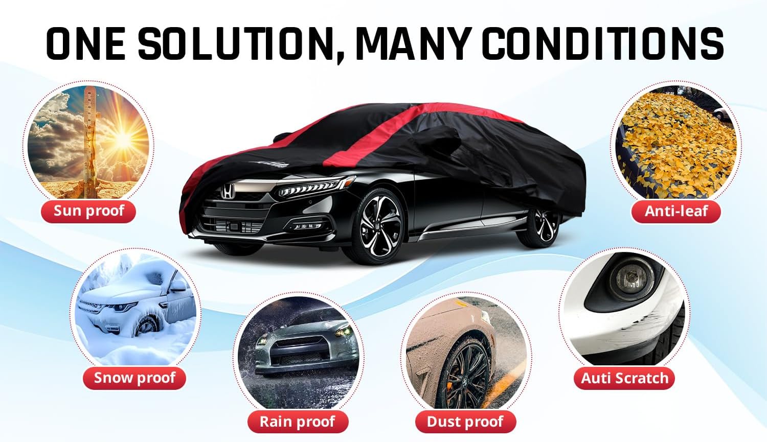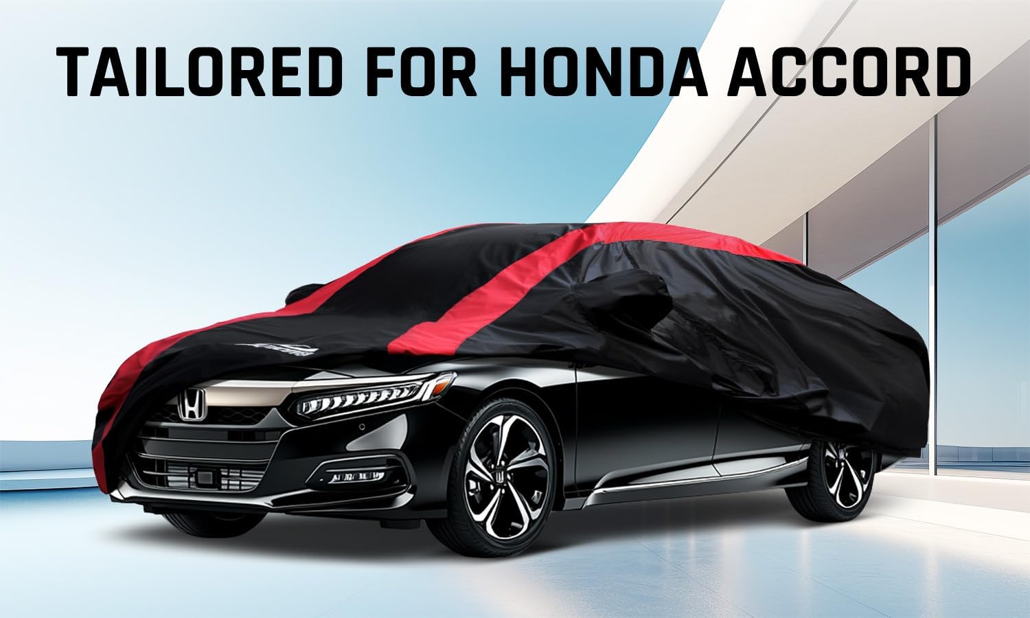 Honda Accord Car Cover Waterproof All Weather with Red Strip Design, Custom Fit for Honda Accord 1998–2025, Accord Accessory with Door Zipper & Windproof Straps