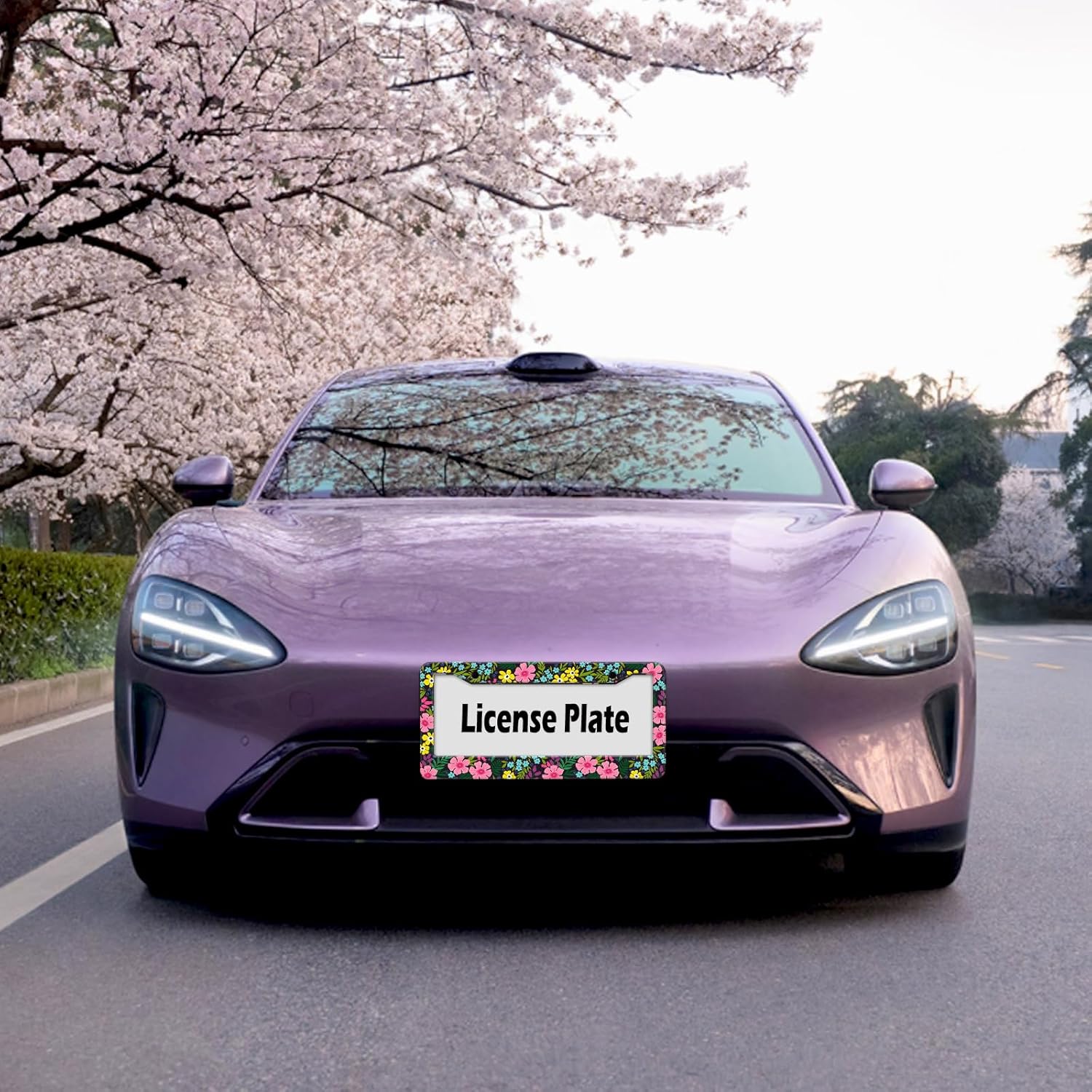 Floral License Plate Frame, Flowers License Plate Holder Covers, Metal Aluminum Rustproof Car Accessories for Us Canada Standard Women Men 2 Holes with Screw Caps