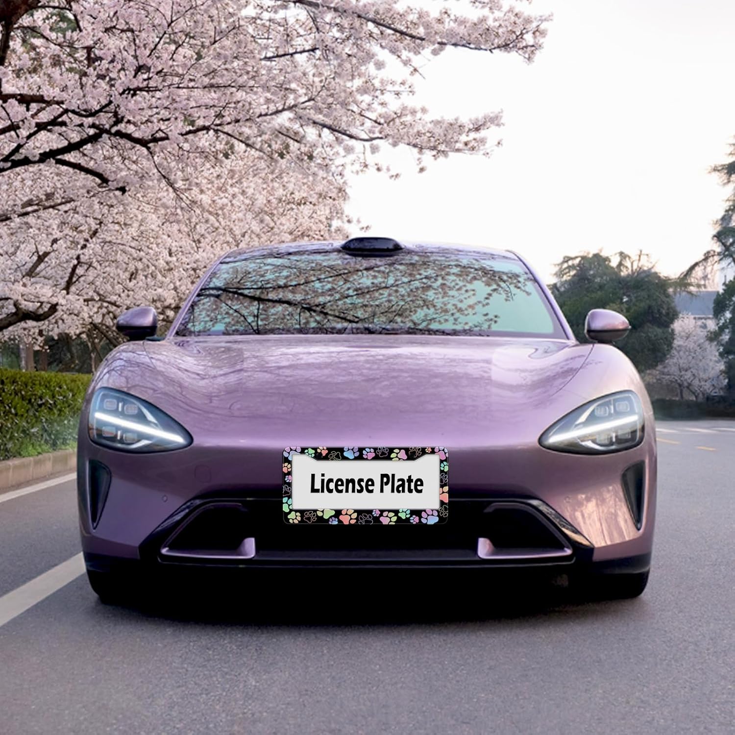 Dog Paw Car License Plate Frames, Colorful Pet Paw Printed License Plate Holder Cover, Metal Aluminum Rustproof Car Accessories for US Canada Standard Women Men 2 Holes with Screw Caps