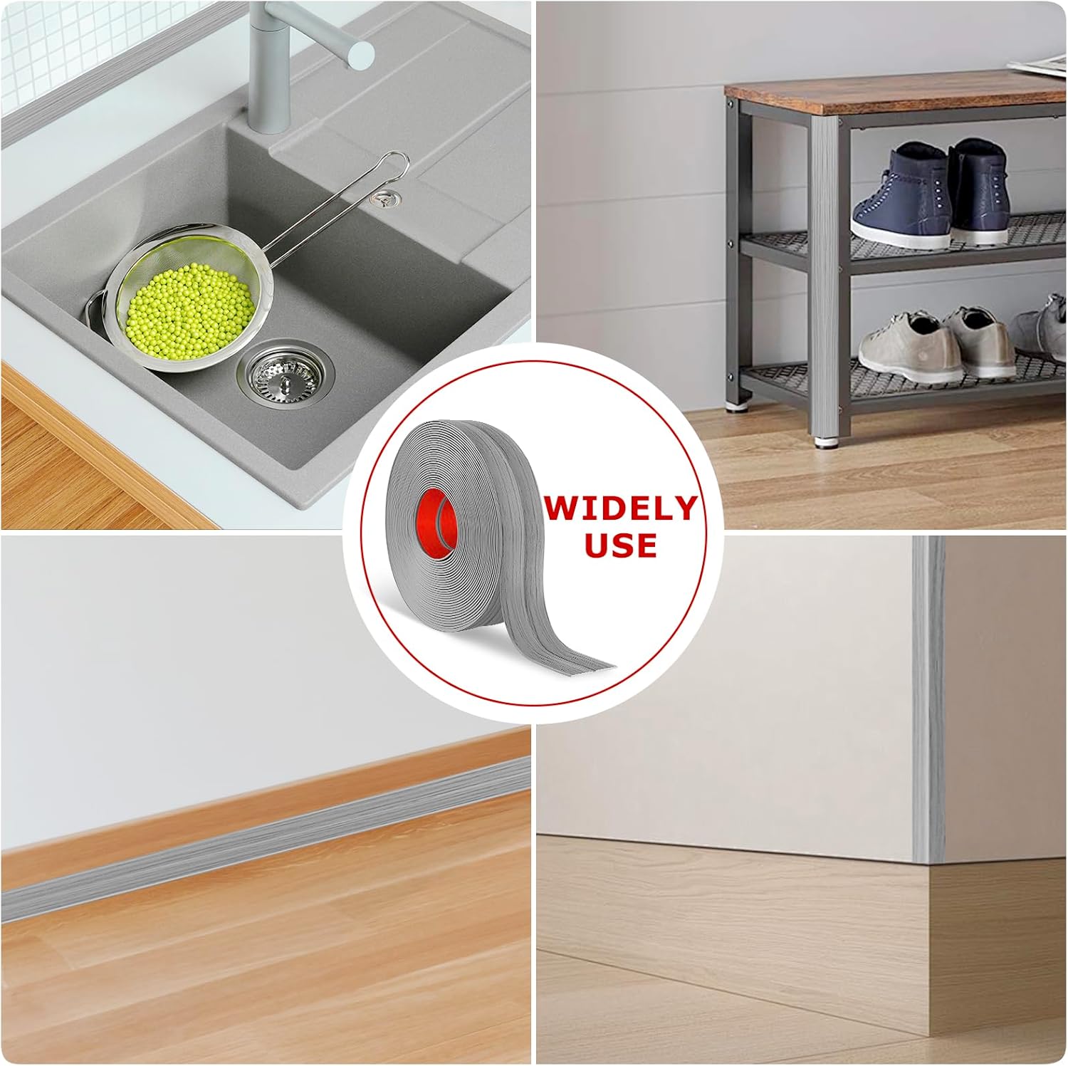 - [Multiple Application] The versatility of our corner molding trim is essential as it can adhere seamlessly to various surfaces, including tiles, plastic, marble, metal, glass, wood, and smooth walls. This makes it suitable for use in bathrooms, bedrooms, living rooms, kitchens, offices, toilets - essentially anywhere you need added protection or decorative enhancement.