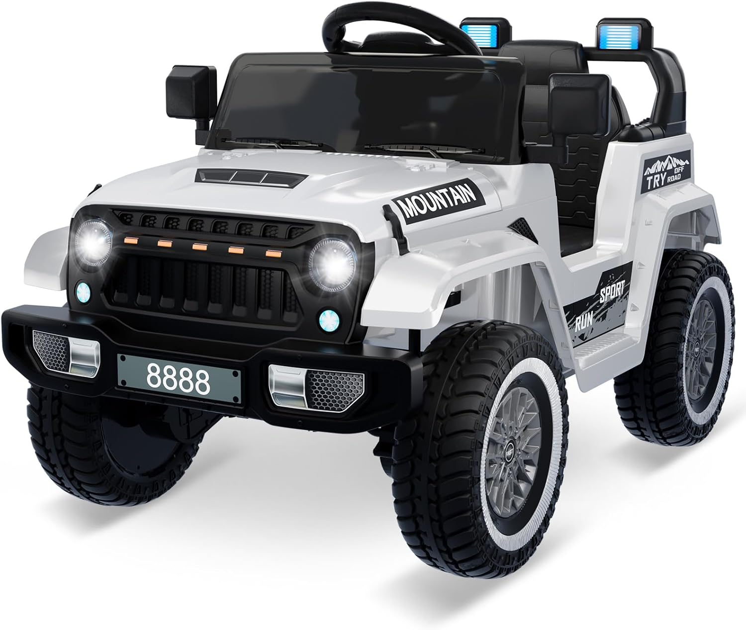 12V Kids Ride On Truck Car, Battery Powered Electric Vehicles with Remote Control, Spring Suspensions, 3 Speeds, LED Lights, Music, MP3, Ride On Toy Car for Children Toddles Boys Girls, White