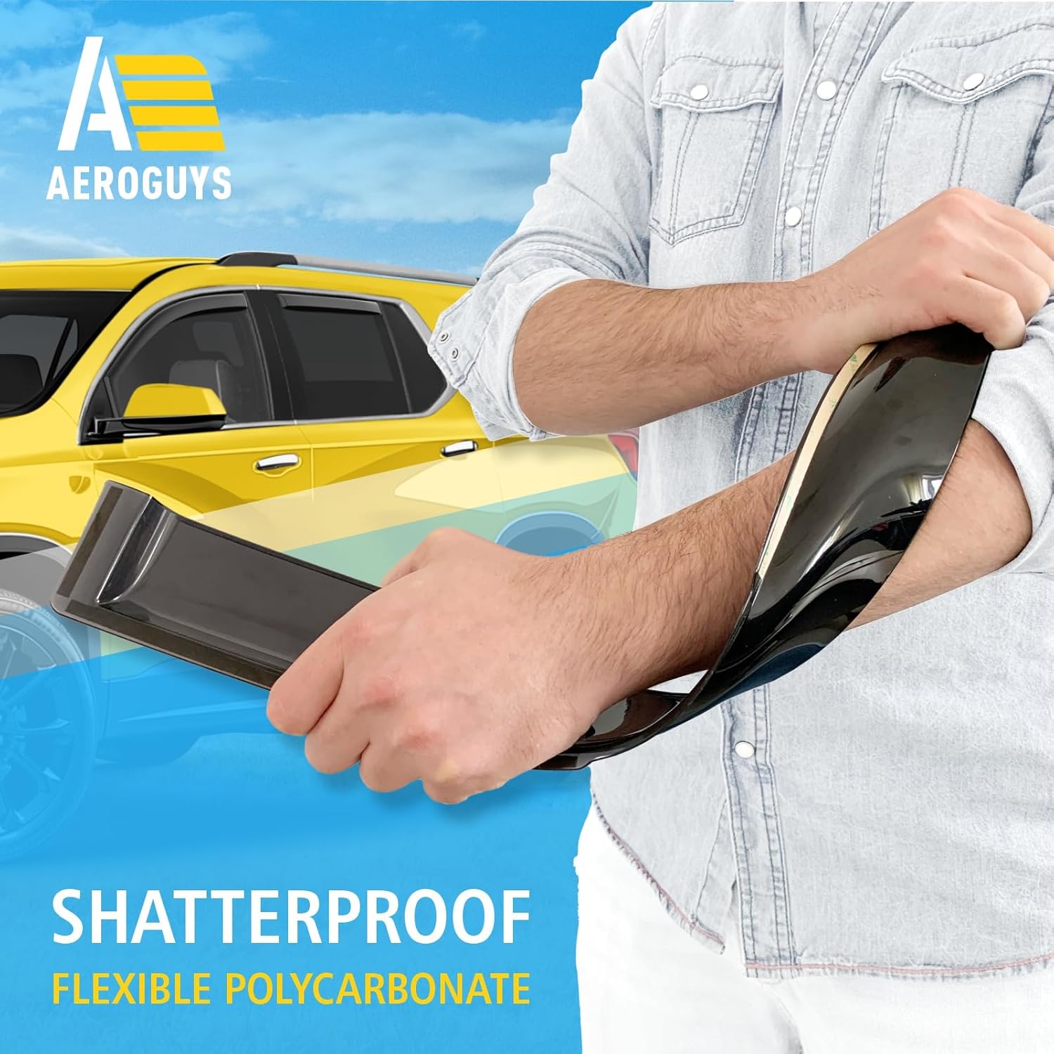 - Incredibly Durable AEROGUYS Auto Window Deflectors – They are made with strong and tough polycarbonate which is clear and scratch-resistant. They also provide UV protection making your ride more comfortable under all weather conditions.
