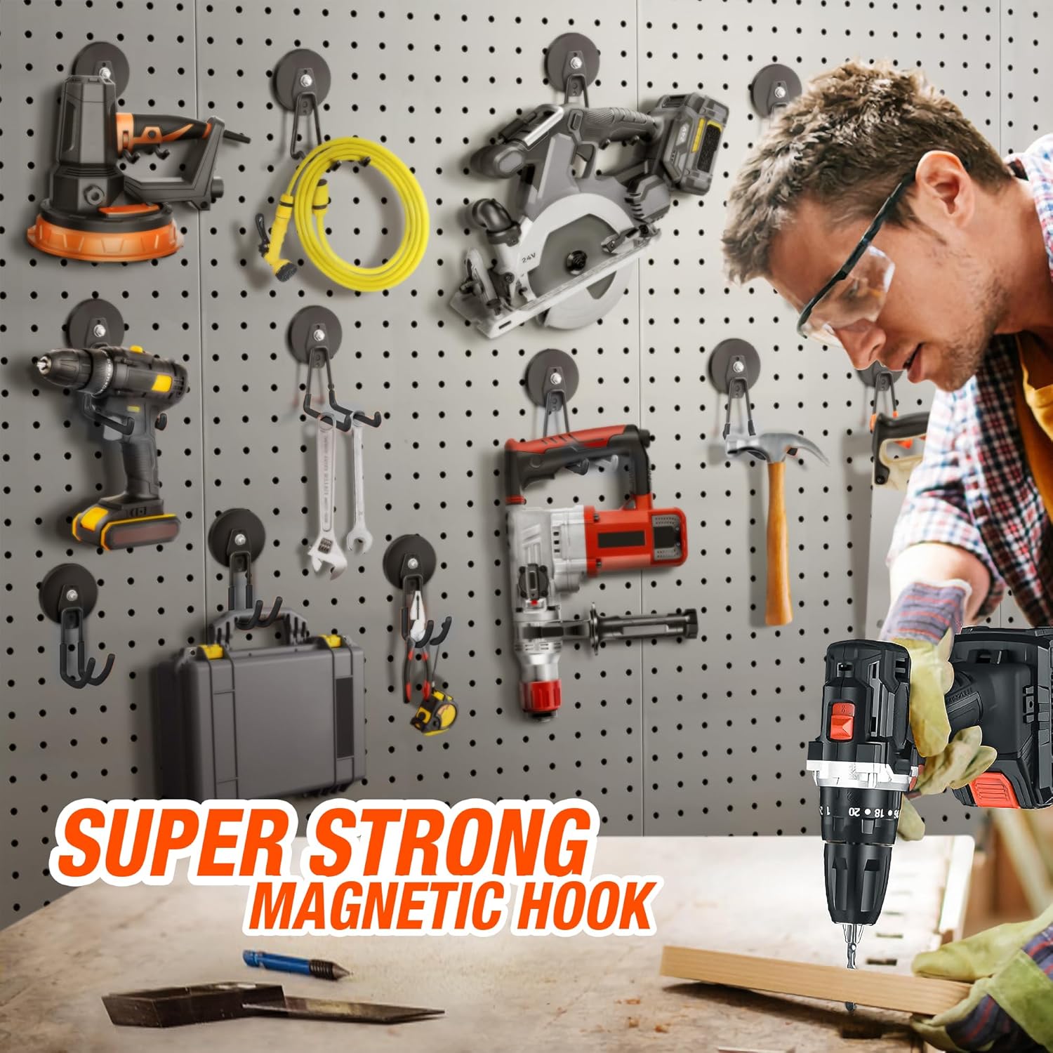- 🧲[4PCS Magnetic Hooks For Hanging] Large strong magnetic hook present an efficient solution for optimizing vertical storage space within your garage organization system. These multifunctional extra magnet storage hooks are suitable for both indoor and outdoor settings, including garages, gardens, kitchen, warehouse, cruise cabin, utility rooms and indoor/outdoor