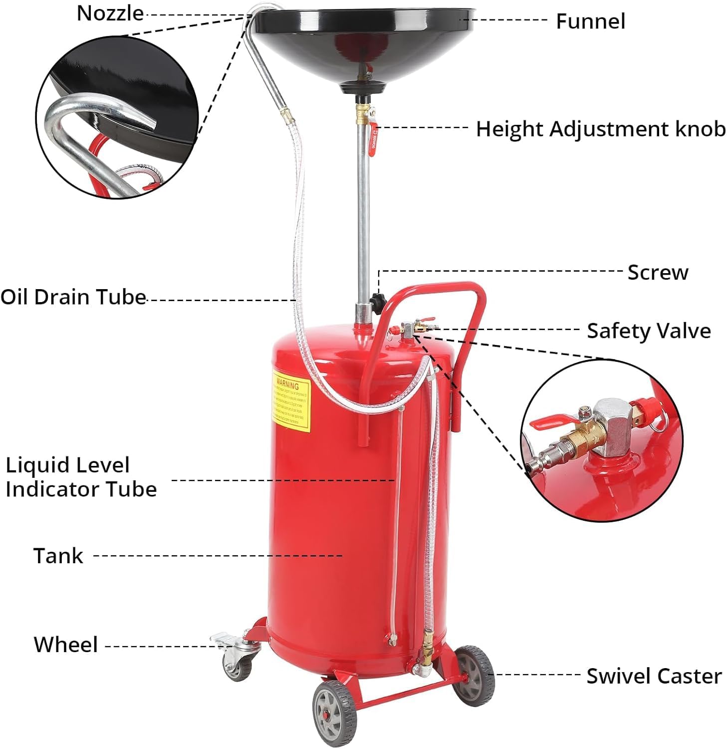 - Large Capacity: Features a 20-gallon tank that provides ample space for efficient waste oil collection, reducing the frequency of emptying during oil changes in garages and auto repair shops.