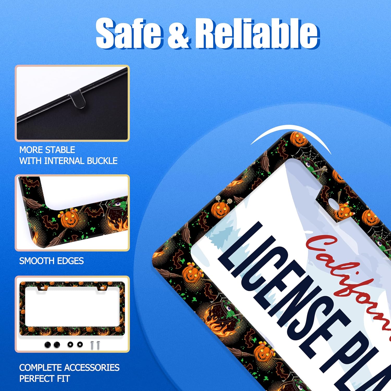 Halloween License Plate Frame Pumpkin Bats License Plate Stainless Steel Funny License Plate Holder for Men Women Universal Colorful Car Accessories Decoration 12.3" x 6.3"