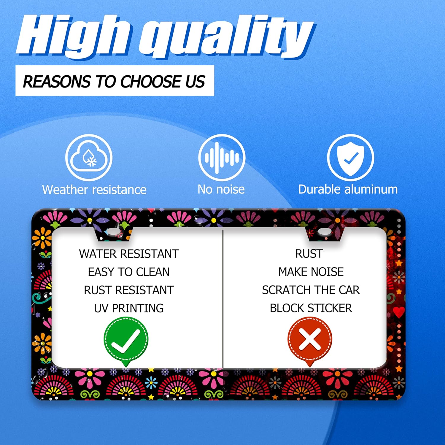 Folk Flowers Vintage Floral License Plate Frame Flower License Plate Stainless Steel Funny License Plate Holder for Men Women Universal Colorful Car Accessories Decoration 12.3" x 6.3"