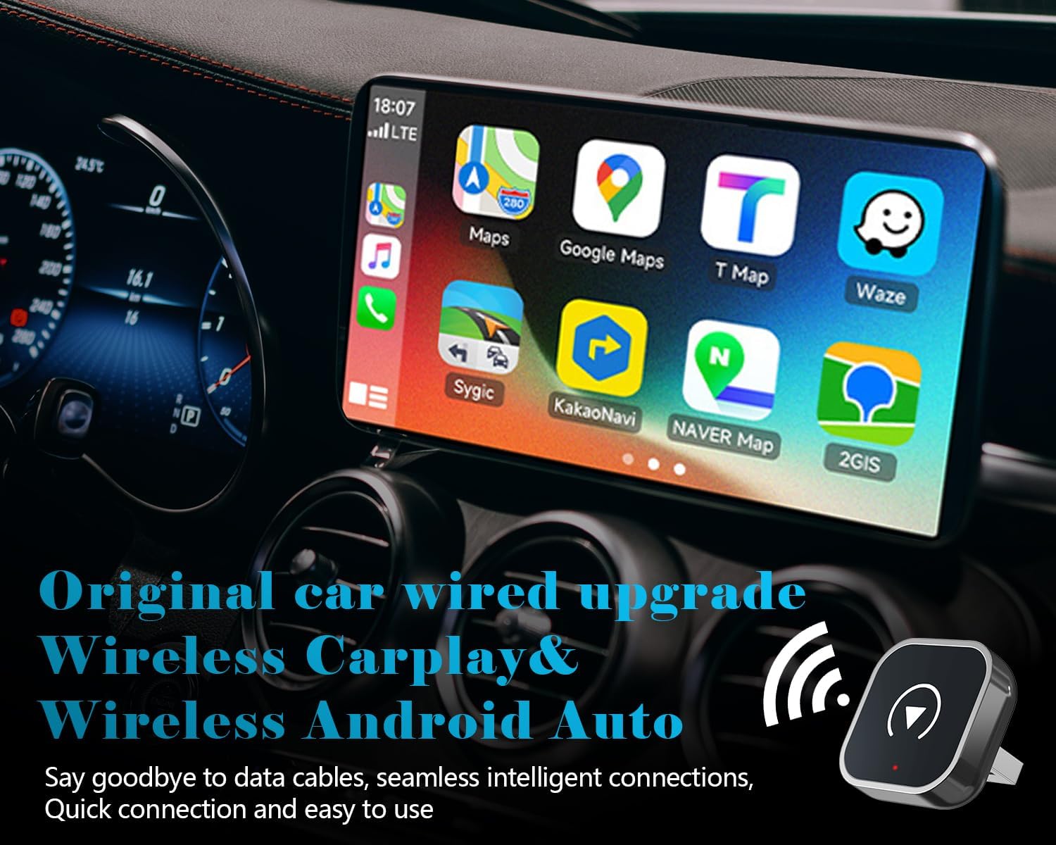 - Seamless Wireless CarPlay Connection in Seconds – Easily turn your wired CarPlay into a wireless hub. Instantly access your favorite apps like Spotify, Google Maps, and Phone calls without having to connect your iPhone every time.