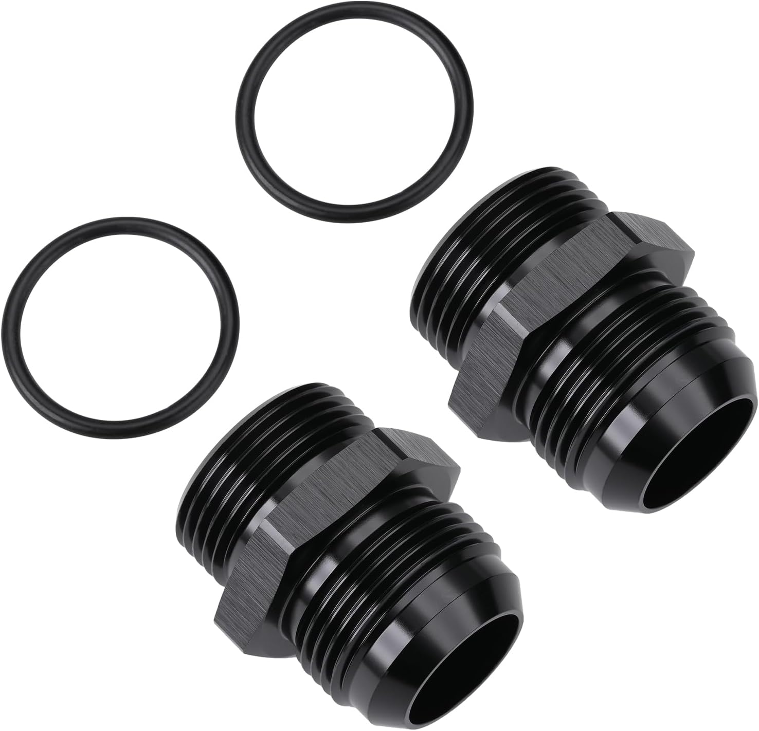 16AN Male Flare to 16AN ORB O-ring Boss Fuel Pump Rail Adapter Fitting Aluminum Black, Pack of 2