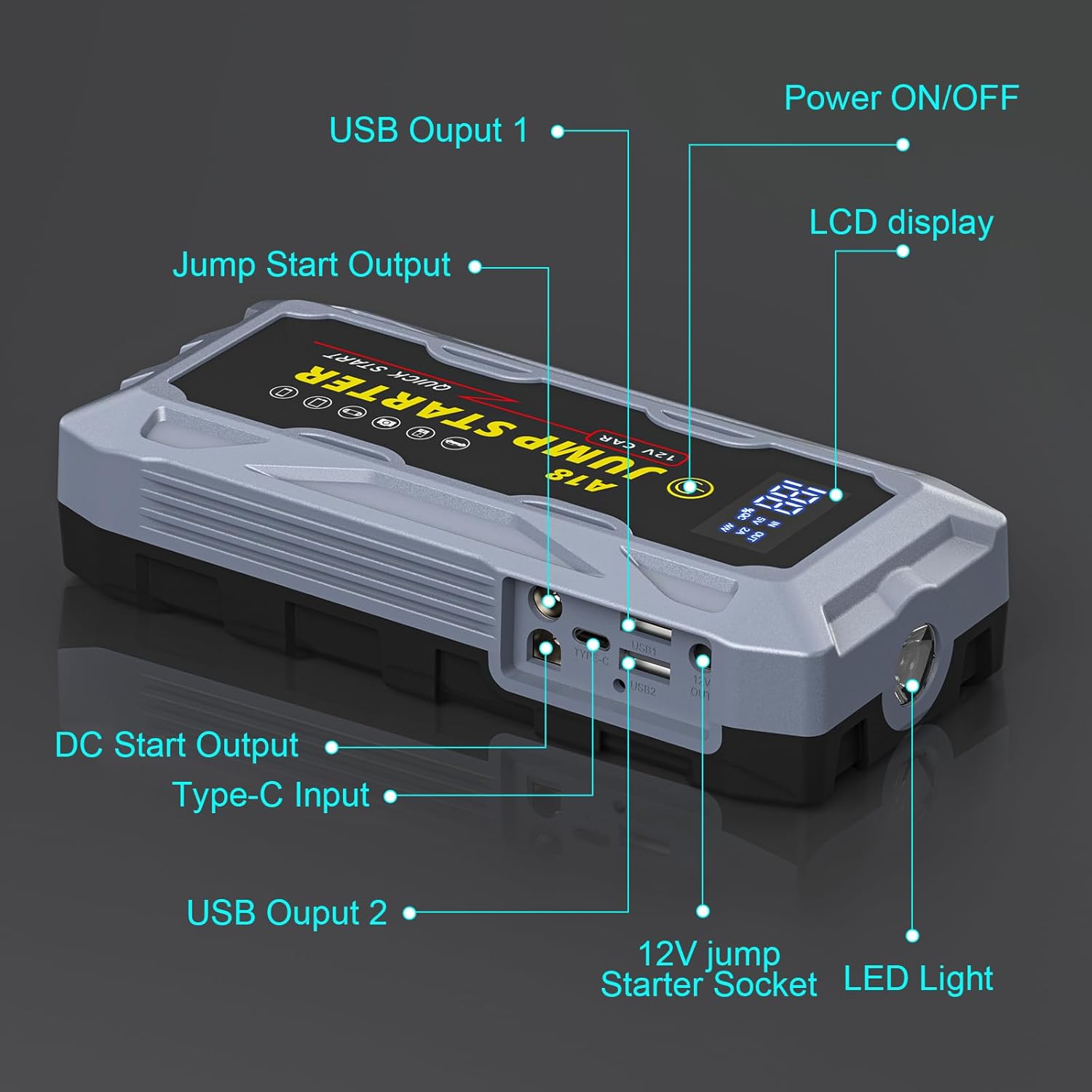 - 【Upgraded 3.0” LCD Display – Real-Time Monitoring】 Stay informed with the crystal-clear 3.0” LCD screen, providing real-time battery status, connection instructions, and error alerts. No more guesswork—monitor your jump starter’s power level and operational status at a glance.