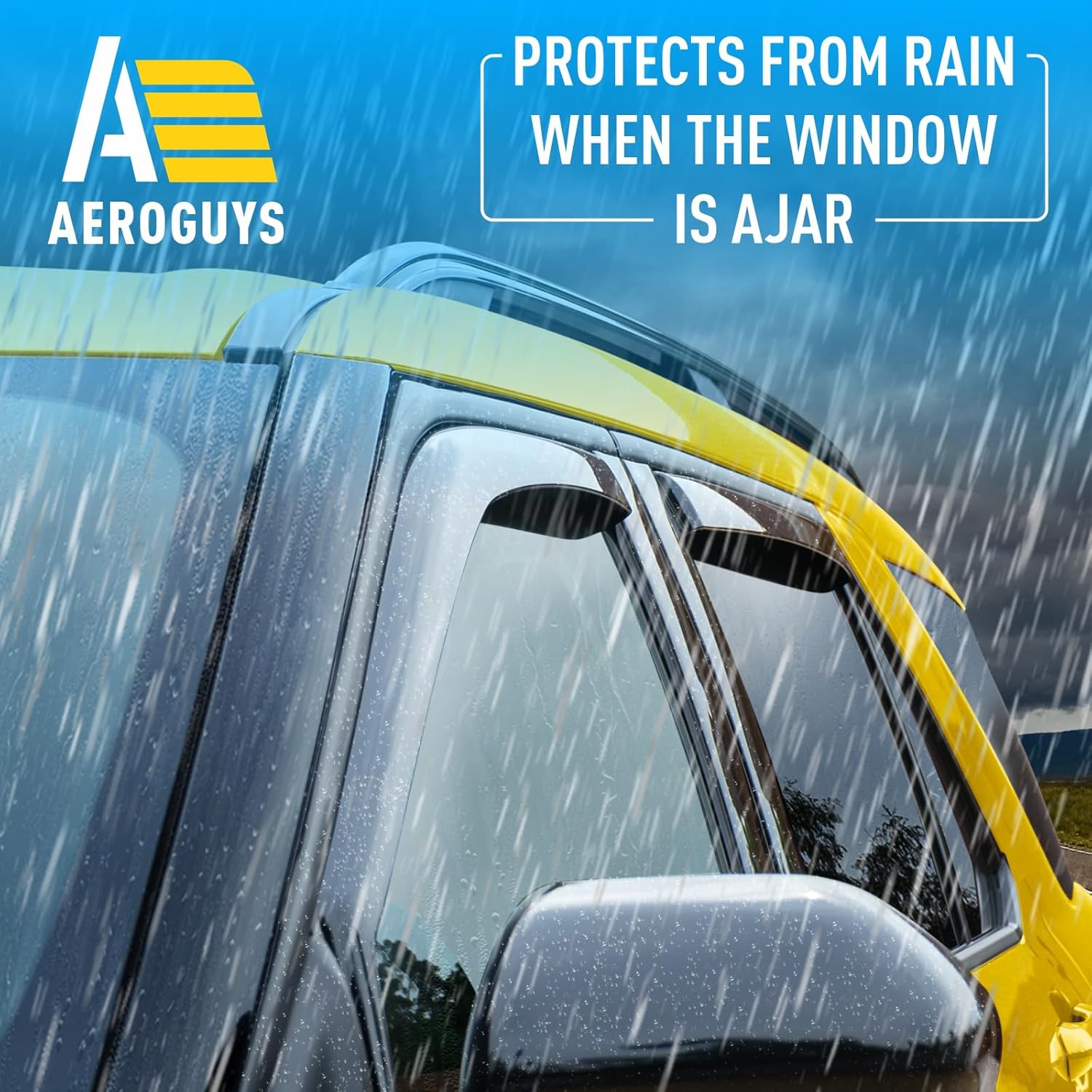 - Incredibly Durable AEROGUYS Auto Window Deflectors – They are made with strong and tough polycarbonate which is clear and scratch-resistant. They also provide UV protection making your ride more comfortable under all weather conditions.