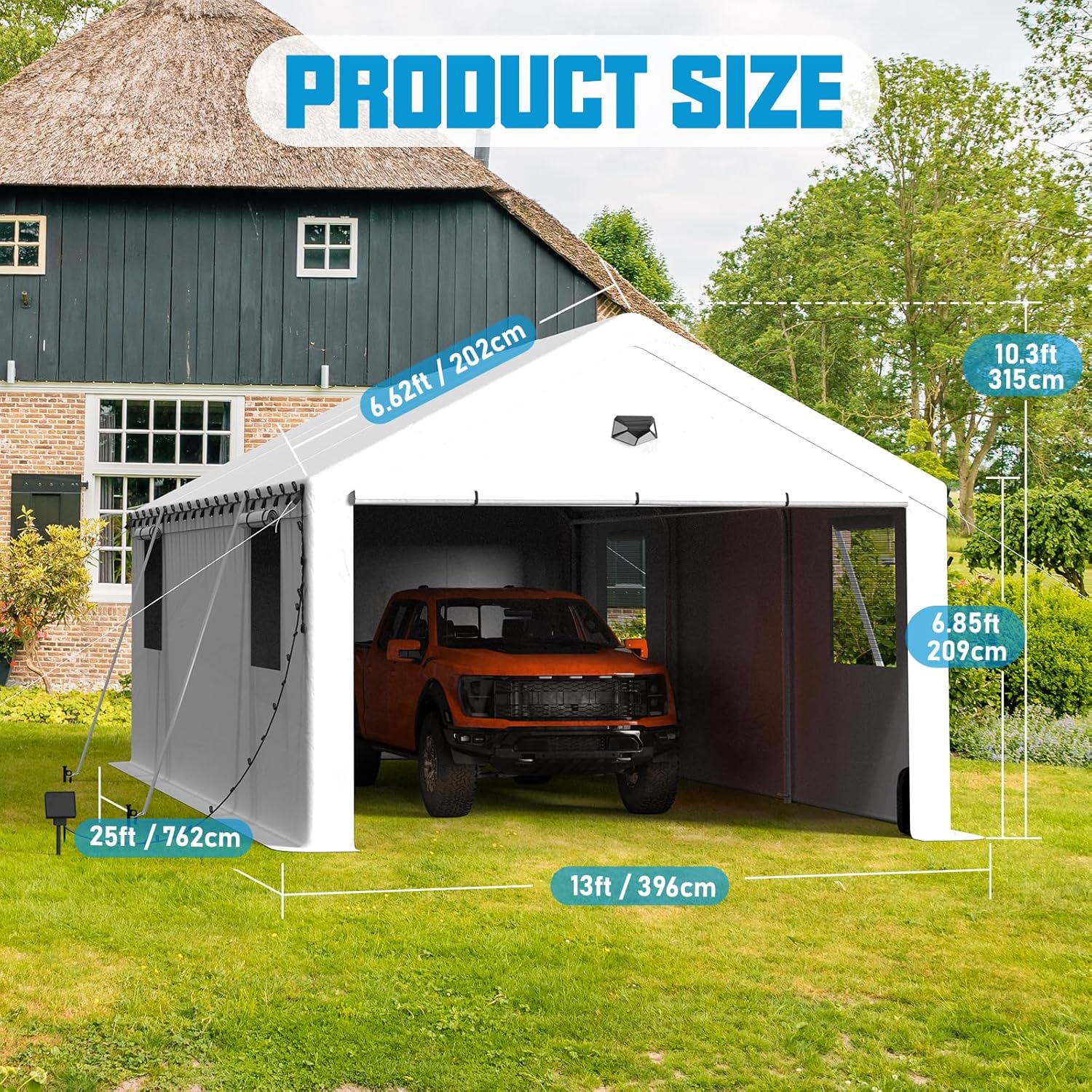 13x25 Carport Canopy, Heavy Duty Car Port, Portable Car Ports Garage with 2 Roll-Up Zipper Drive Through Doors, White