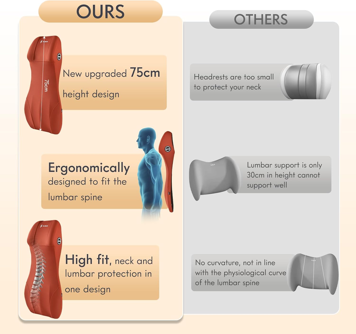 - 【Innovative 2-in-1 Design】Unlike traditional 12-inch lumbar supports with incomplete back coverage, our 29-inch integrated headrest and lumbar support pillow provides full-body support from head to whole back. Experience continuous comfort that cradles your entire spine without slipping while simultaneously supporting shoulders, neck, and lower back.