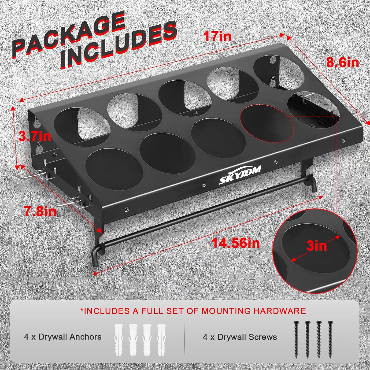 - Space-Saving Mount: Mount this spray can holder rack anywhere you need—on your tool shed wall, workshop, or garage. Instantly free up valuable space while keeping all your accessories organized and ready to go for your next job