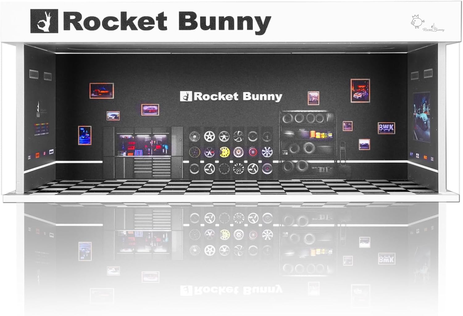 Display Case for Hot Wheels: Stackable Parking Garage for 1/64 Scale Matchbox Toy Car, FoamBoard Storage for Monster Trucks with LED Light and Acrylic Cover, 2025 Upgraded Rocket Bunny