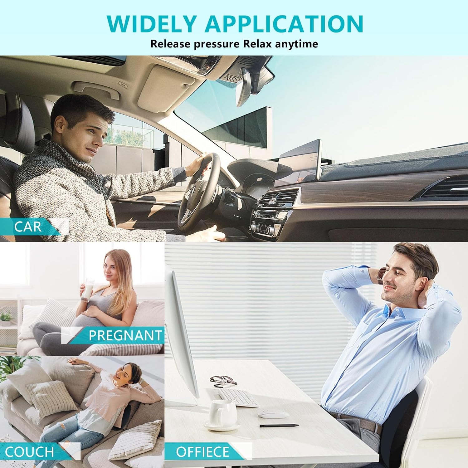 - User-Friendly: Our office seat cushion features a 3D contoured design that evenly distributes pressure on the hips and legs, alleviating discomfort. The lumbar support pillow contours to your back for essential posture support, while the car neck pillow fills the gap between the headrest and neck to prevent stiffness