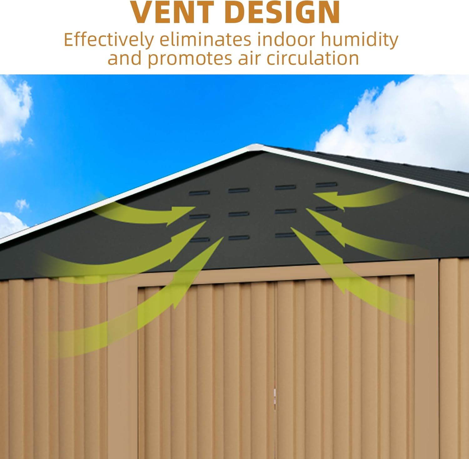 10x10FT Outdoor Metal Storage Shed, Lockable Weatherproof Garden Shed for Tools & Equipment, Durable Galvanized Steel with Sloping Roof & Ventilation, Ideal for Backyard, Patio & Garage Storage, Brown