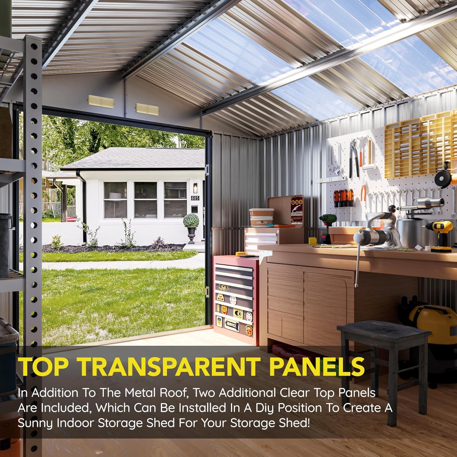 - Replaceable Skylight Roof Panel – The translucent roof panel can be easily replaced to maintain brightness inside the shed over time.