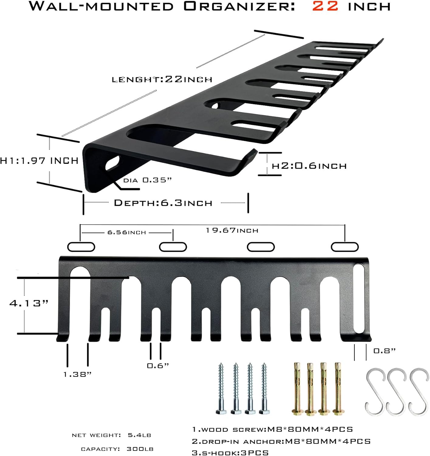 22‘’/25‘’/31‘’Black Wall-Mounted Tool Storage Rack, Suitable for Outdoor Garden, Space-Saving, Strong Storage Capacity.Barbell Wall Rack.Weight Capacity: 300 LB.-350LB